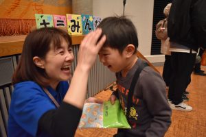 ご飯は、オニの顔ですね。デザートのゼリーも鬼の顔だ(^^♪