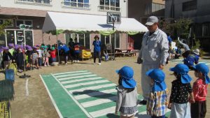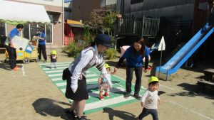小さなお友達もお兄ちゃん、お姉ちゃんの真似っこで歩いてみます。