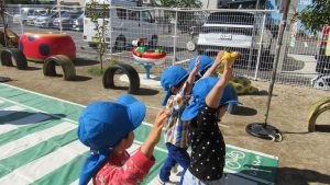 興味津々のきしっ子です。今日は、交通ルールを学びます♫